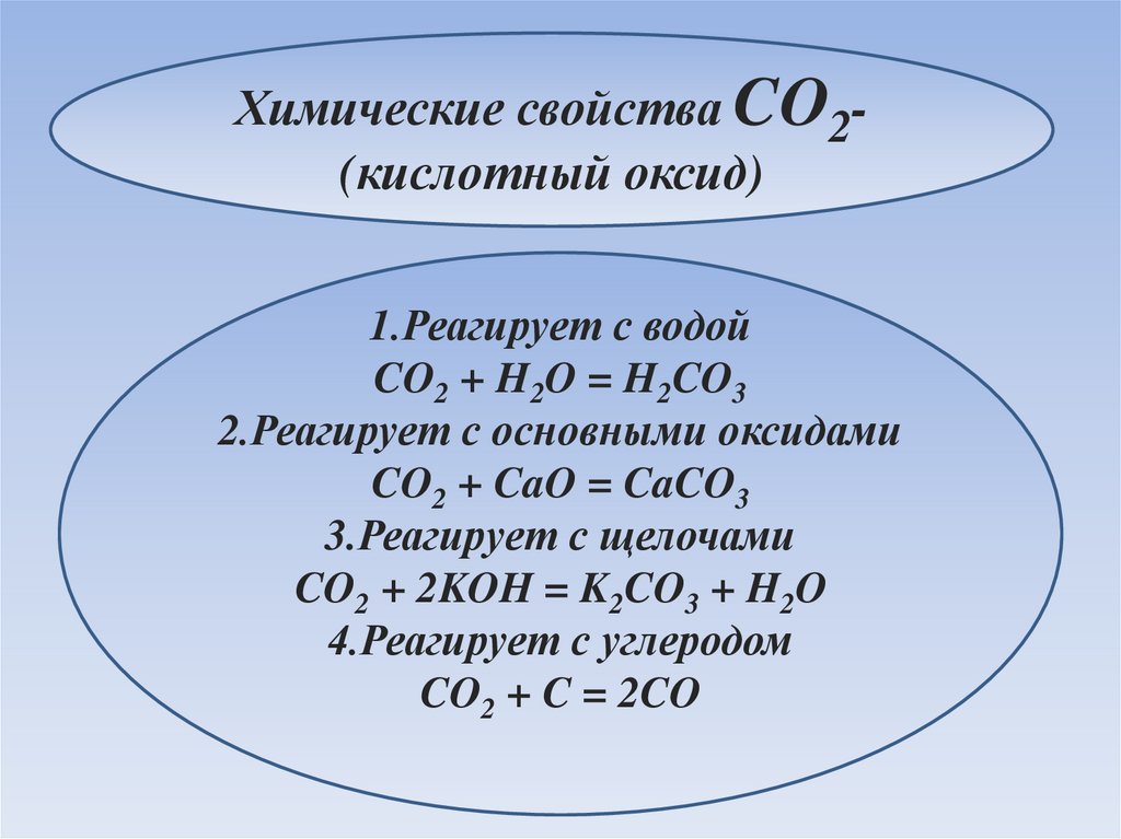 Химические свойства CO2(кислотный оксид)1.Реагирует с водой