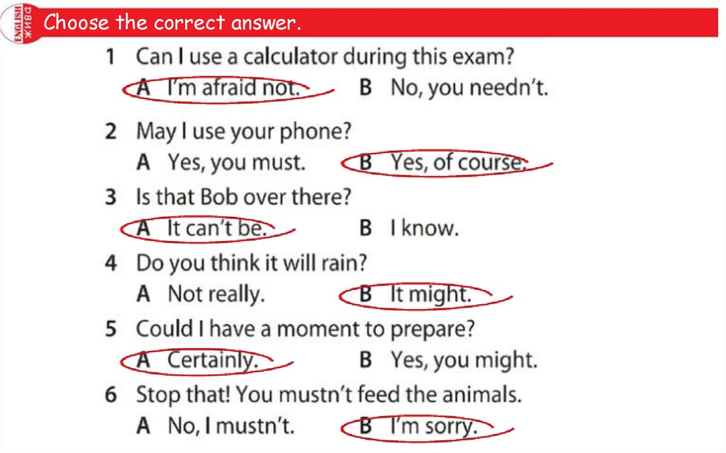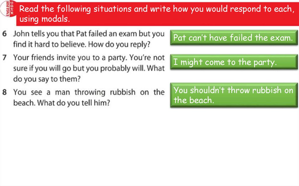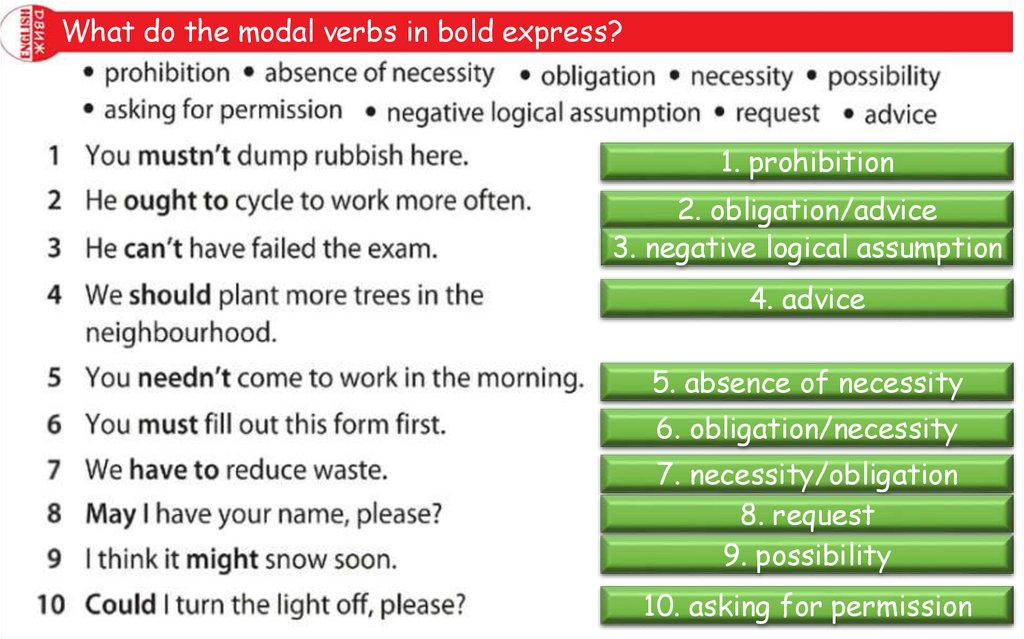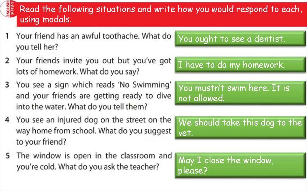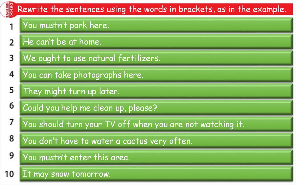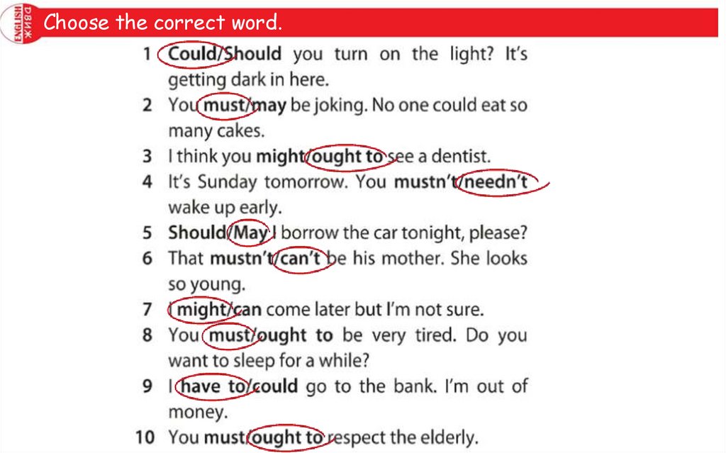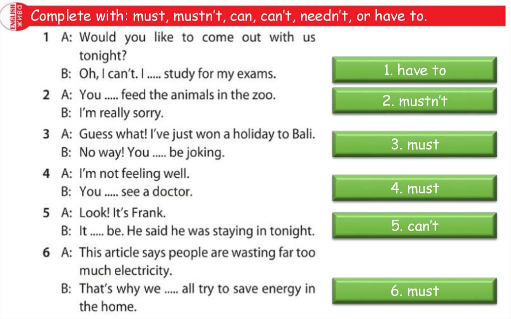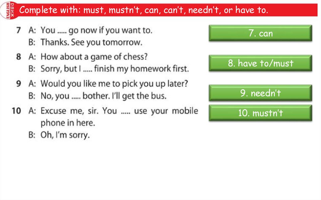 Complete with: must, mustn’t, can, can’t, needn’t, or have to.7. can
