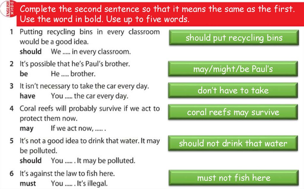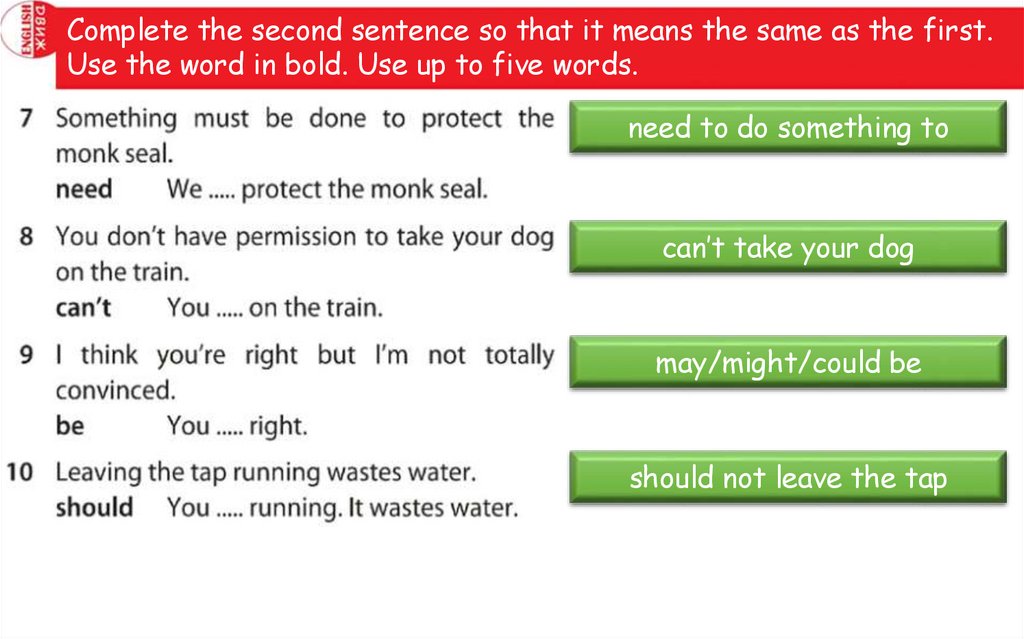 Complete the second sentence so that it means the same as the first.Use the word in bold. Use up to five words.