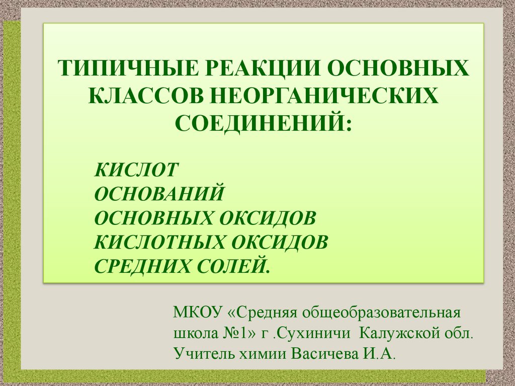 ТИПИЧНЫЕ РЕАКЦИИ ОСНОВНЫХКЛАССОВ НЕОРГАНИЧЕСКИХ