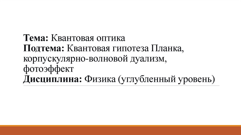 Тема: Квантовая оптикаПодтема: Квантовая гипотеза Планка,