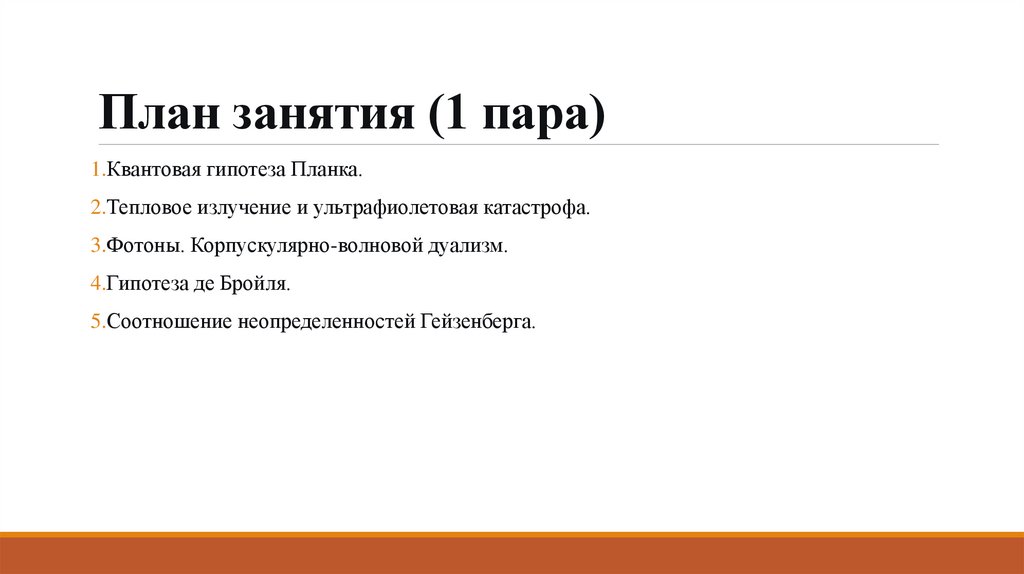 План занятия (1 пара)1.Квантовая гипотеза Планка.