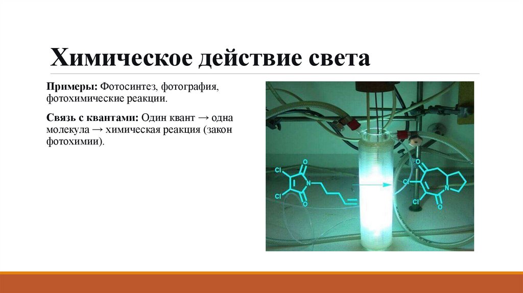 Химическое действие светаПримеры: Фотосинтез, фотография,
