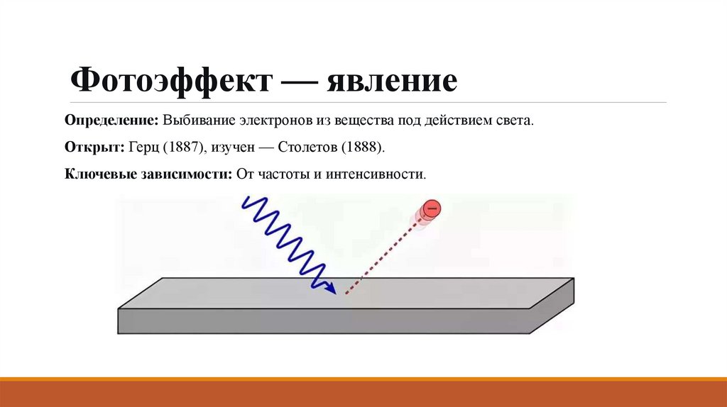Фотоэффект — явлениеОпределение: Выбивание электронов из вещества под действием света.