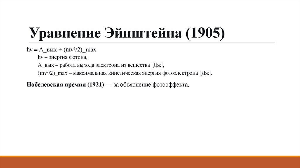 Уравнение Эйнштейна (1905)hν = A_вых + (mv²/2)_max