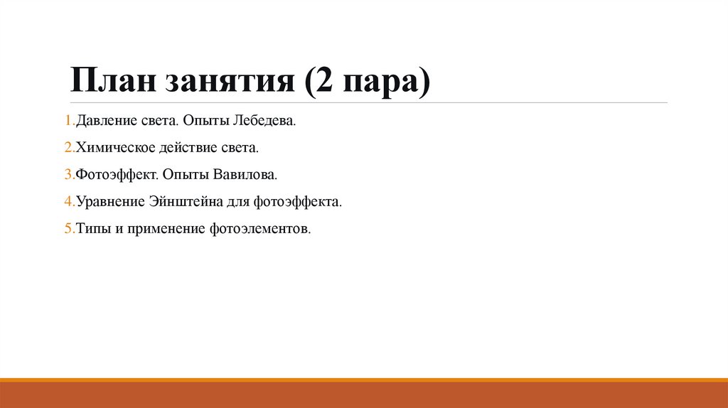 План занятия (2 пара)1.Давление света. Опыты Лебедева.