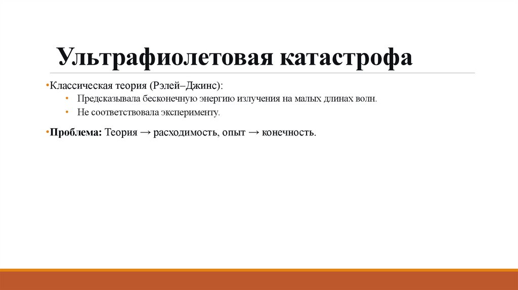 • Предсказывала бесконечную энергию излучения на малых длинах волн.