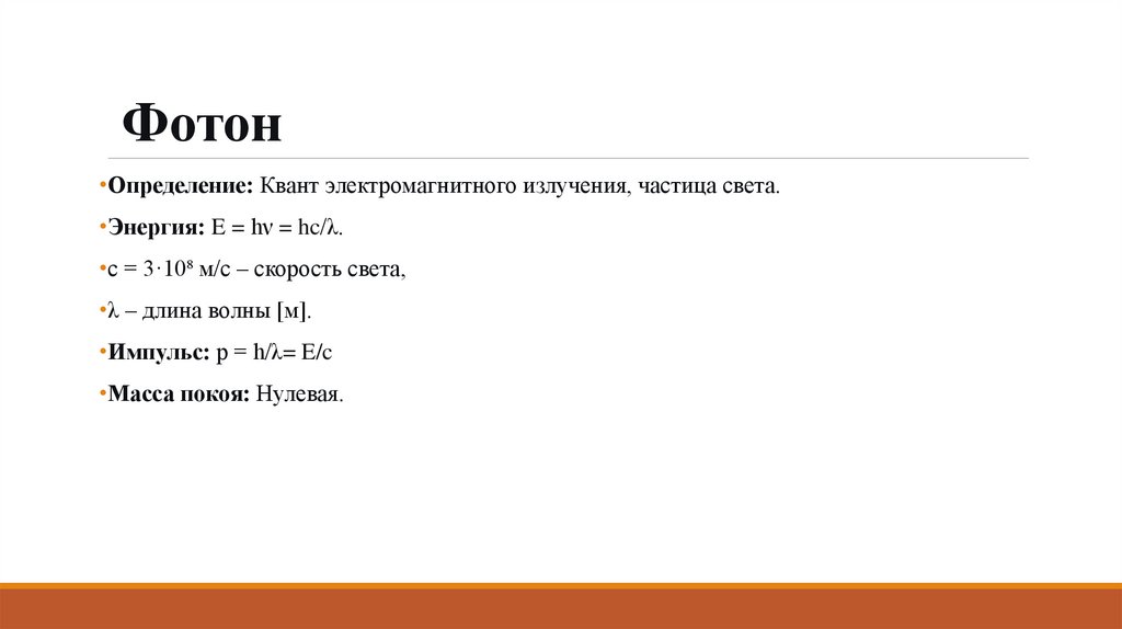 2.Что такое фотон? Запишите формулы для его энергии и импульса.