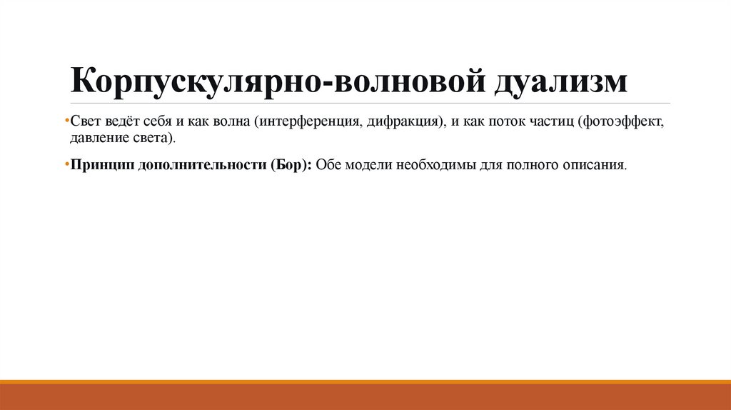 •Принцип дополнительности (Бор): Обе модели необходимы для полного описания.