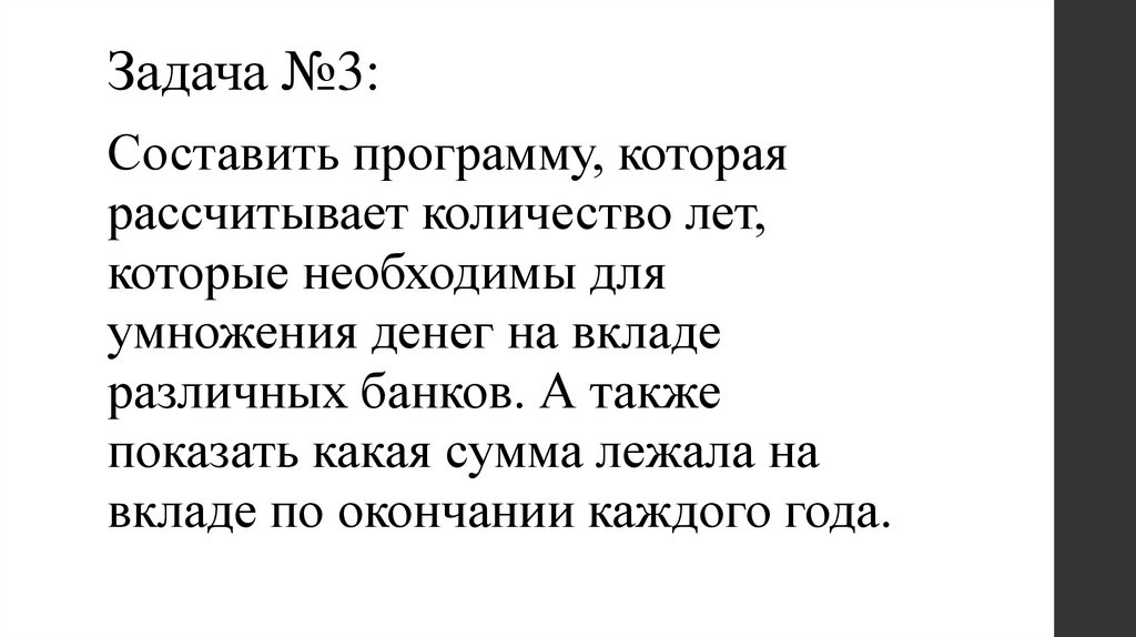 • Тело цикла выполняется до тех пор, пока логическое выражение возвращаетистину. Может содержать else.