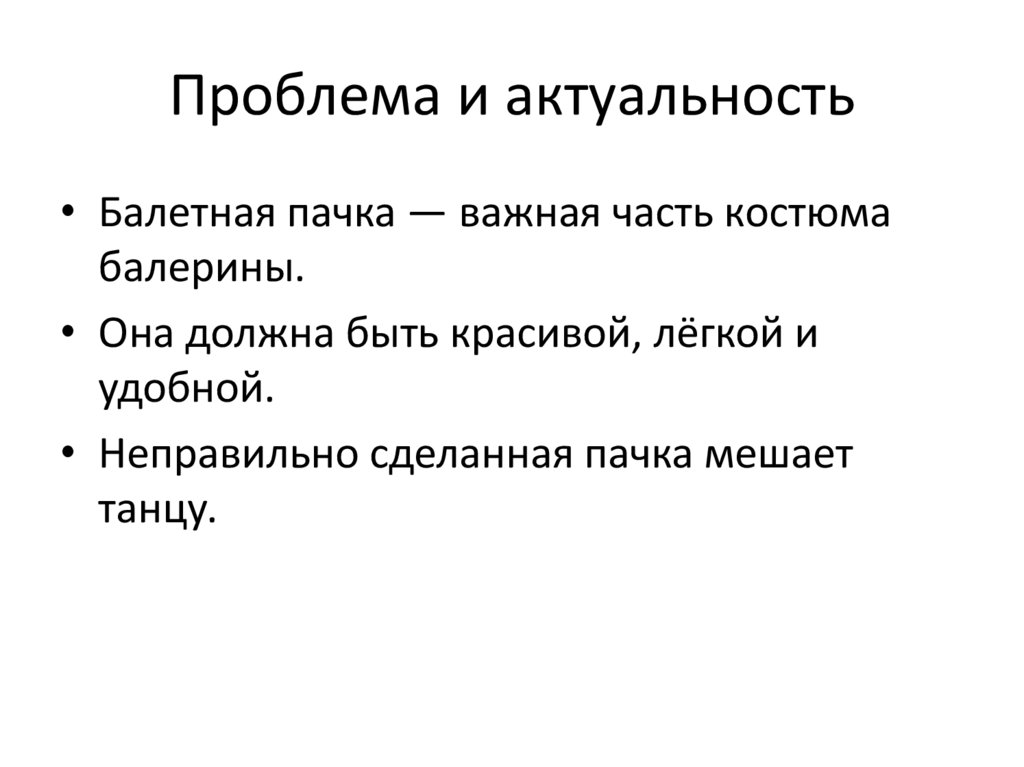 Проблема и актуальность• Балетная пачка — важная часть костюма