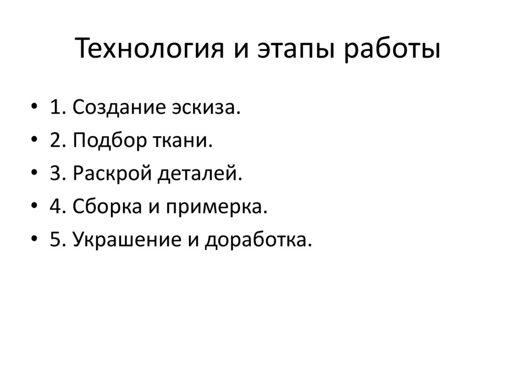 Технология и этапы работы• 1. Создание эскиза.