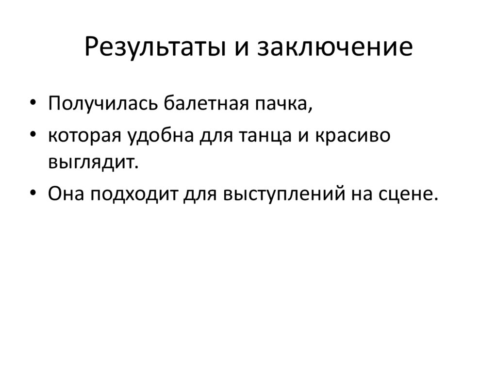 Результаты и заключение• Получилась балетная пачка,