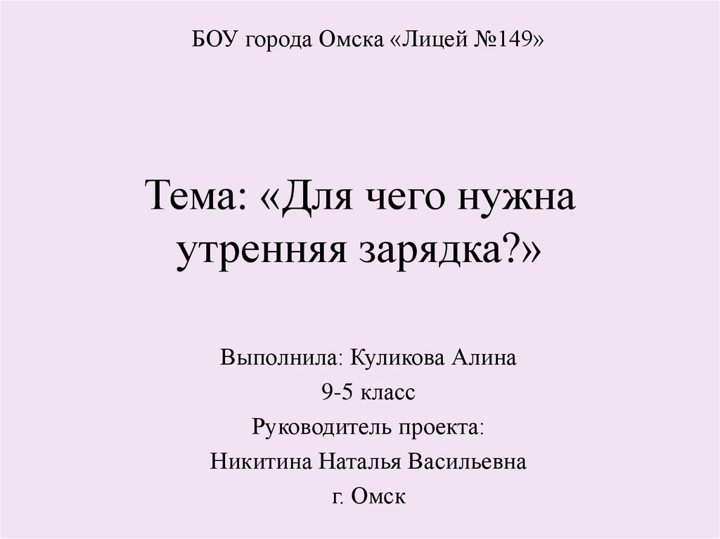 БОУ города Омска «Лицей №149»Тема: «Для чего нужна