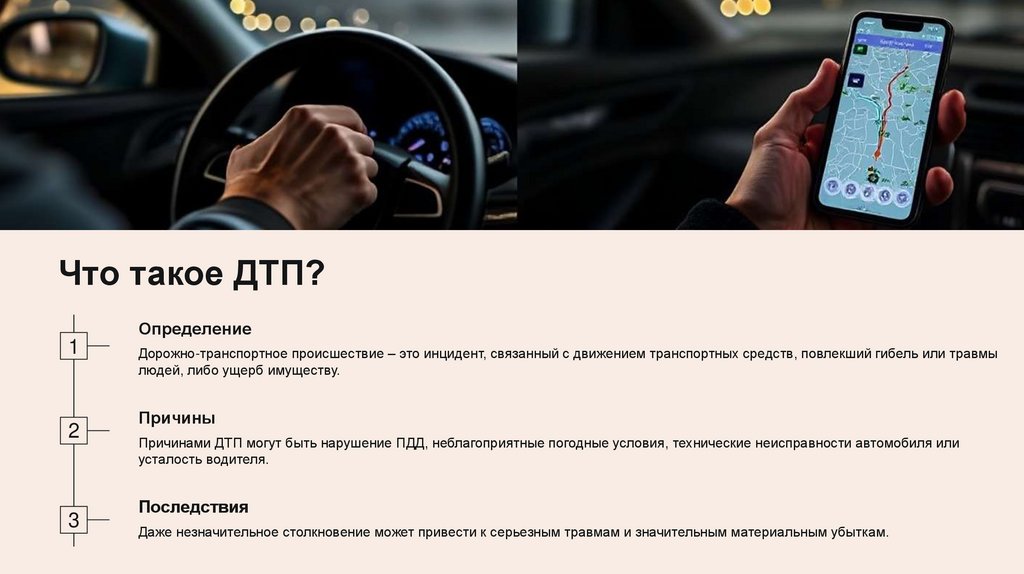 Дорожно-транспортное происшествие – это инцидент, связанный с движением транспортных средств, повлекший гибель или травмы