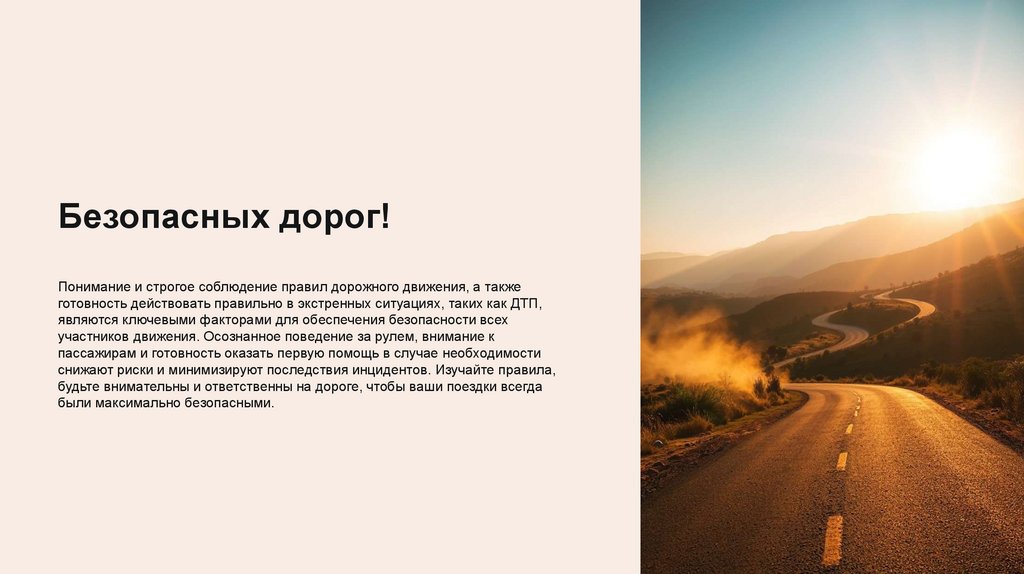 Безопасных дорог!Понимание и строгое соблюдение правил дорожного движения, а также