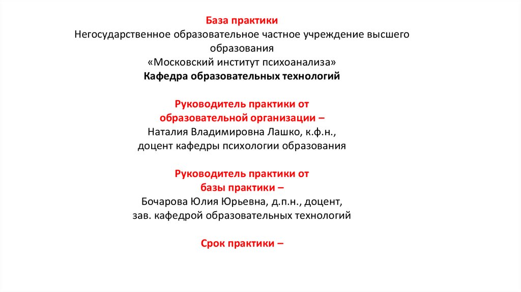 База практикиНегосударственное образовательное частное учреждение высшего