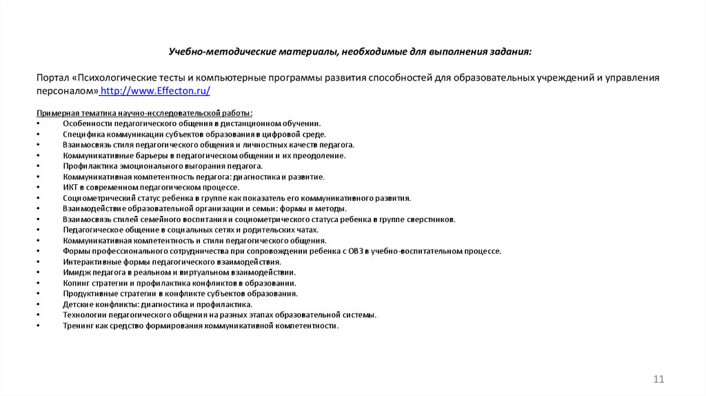 информации в области психологопедагогической проблематики.