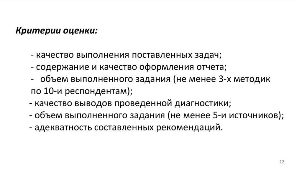 - объем выполненного задания (не менее 3-х методик