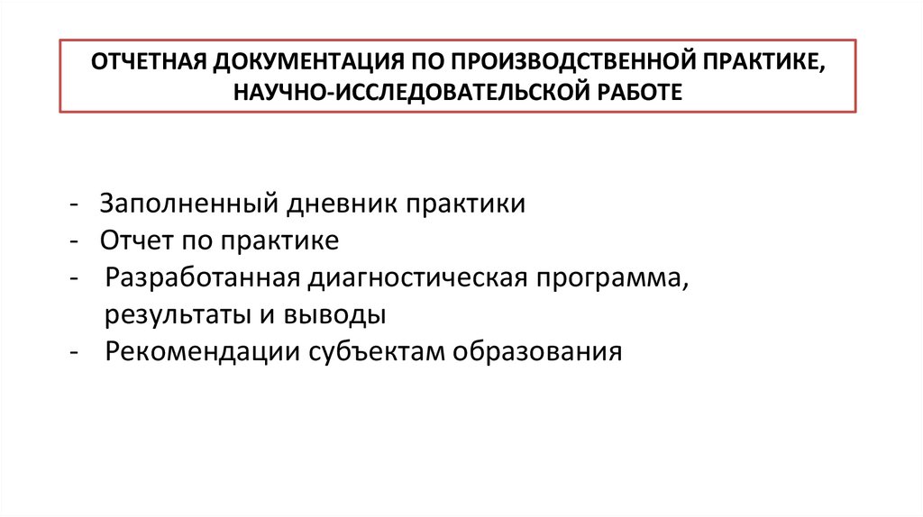 ОТЧЕТНАЯ ДОКУМЕНТАЦИЯ ПО ПРОИЗВОДСТВЕННОЙ ПРАКТИКЕ,НАУЧНО-ИССЛЕДОВАТЕЛЬСКОЙ РАБОТЕ