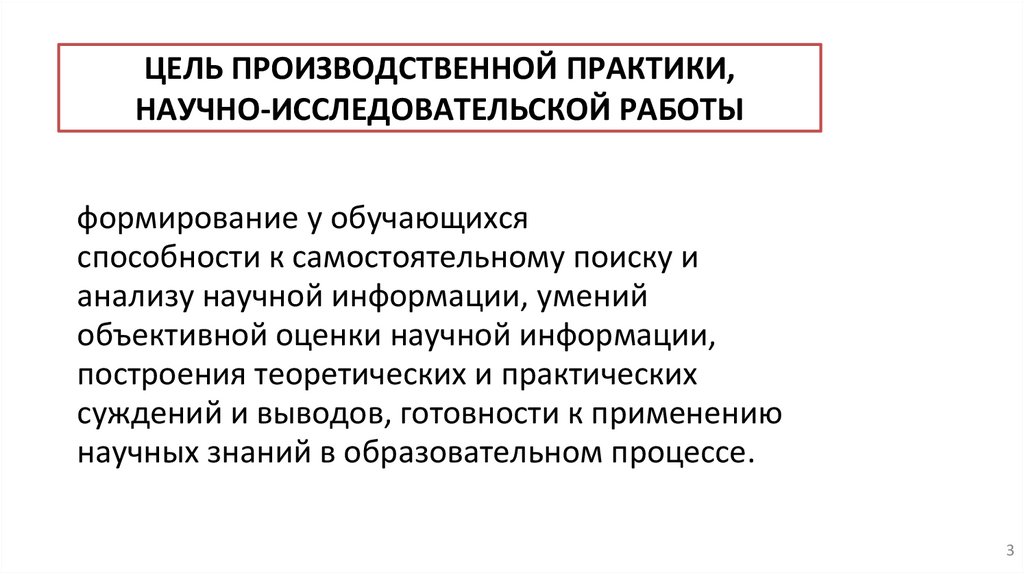 ЦЕЛЬ ПРОИЗВОДСТВЕННОЙ ПРАКТИКИ,НАУЧНО-ИССЛЕДОВАТЕЛЬСКОЙ РАБОТЫ