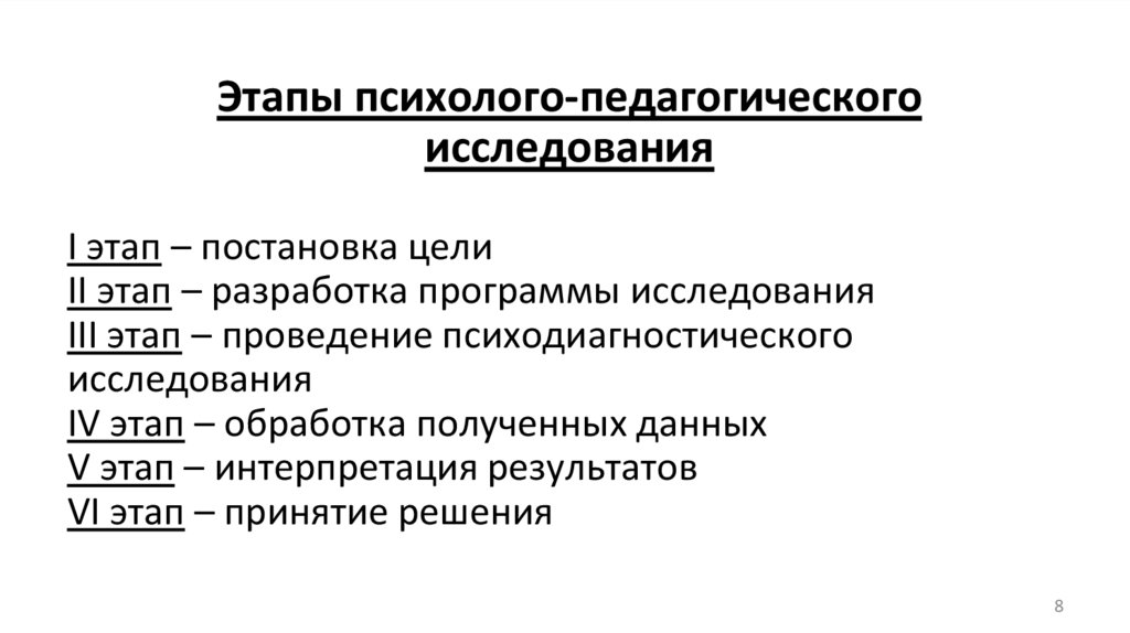 Этапы психолого-педагогическогоисследования