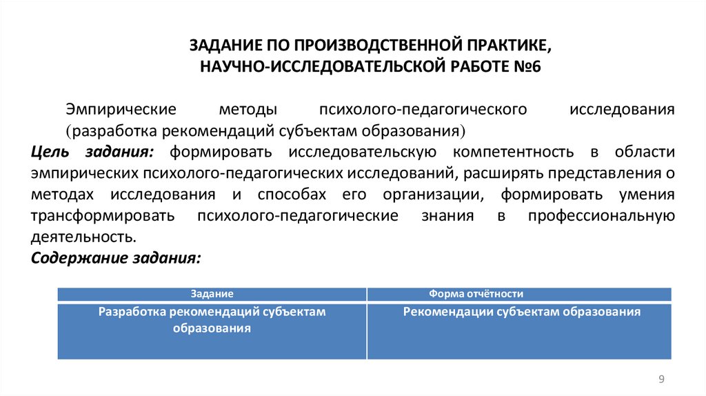 ЗАДАНИЕ ПО ПРОИЗВОДСТВЕННОЙ ПРАКТИКЕ,НАУЧНО-ИССЛЕДОВАТЕЛЬСКОЙ РАБОТЕ №6