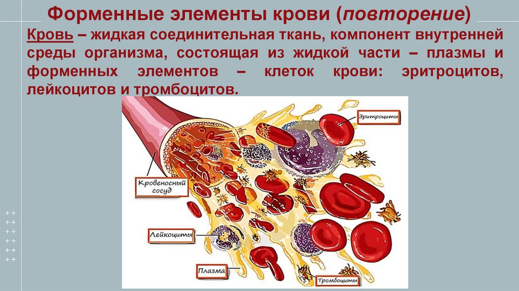 Форменные элементы крови (повторение)Кровь – жидкая соединительная ткань, компонент внутренней