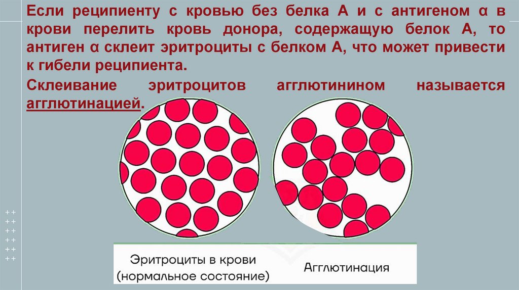 Если реципиенту с кровью без белка А и с антигеном α вкрови перелить кровь донора, содержащую белок А, то