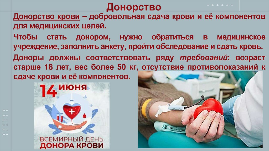 ДонорствоДонорство крови – добровольная сдача крови и её компонентов
