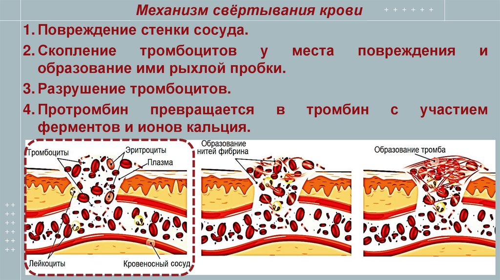 Механизм свёртывания крови1. Повреждение стенки сосуда.