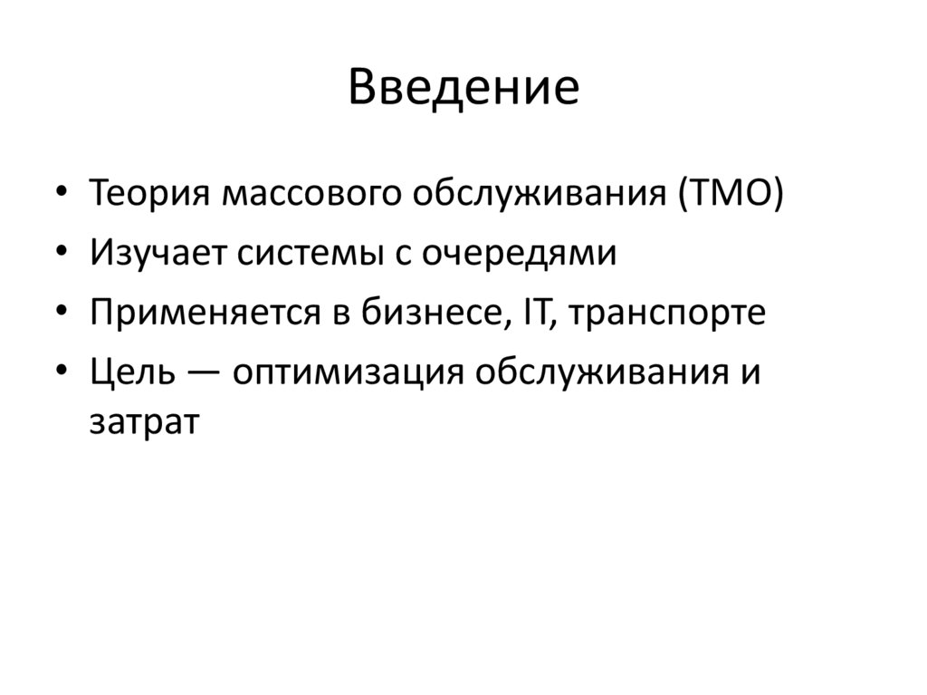 Введение• Теория массового обслуживания (ТМО)
