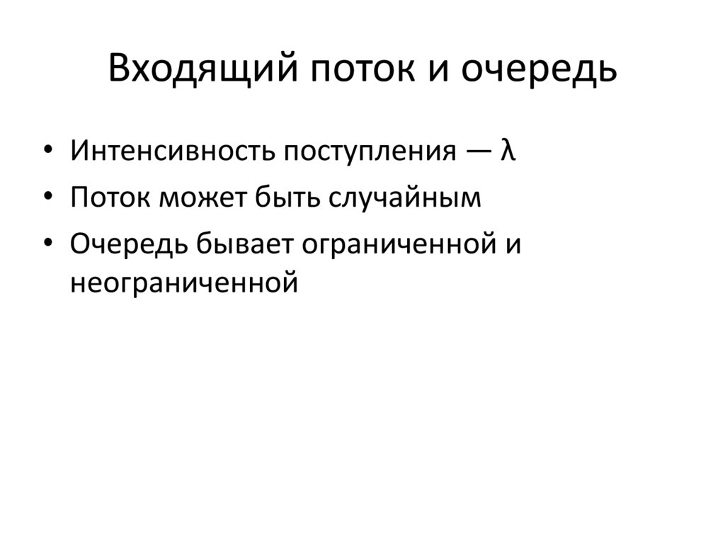 Входящий поток и очередь• Интенсивность поступления — λ