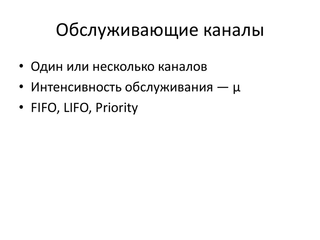 • μ — интенсивность обслуживания