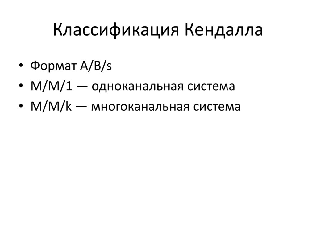 Классификация Кендалла• Формат A/B/s