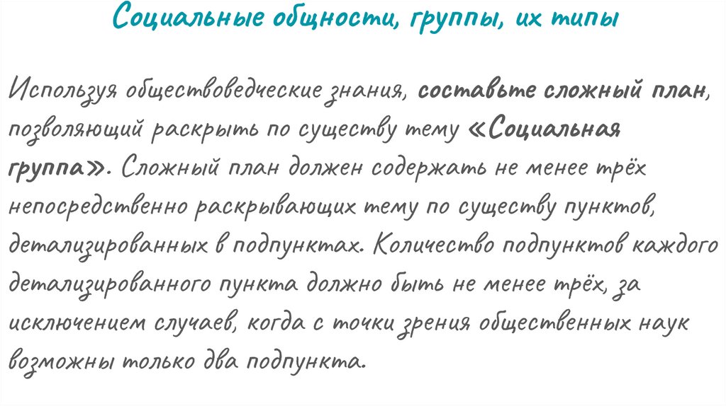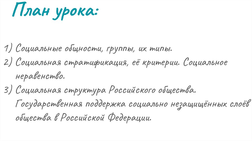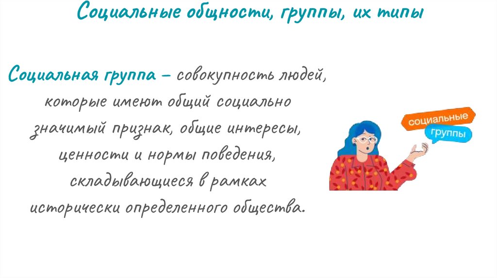 План урока:1) Социальные общности, группы, их типы.