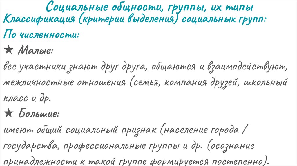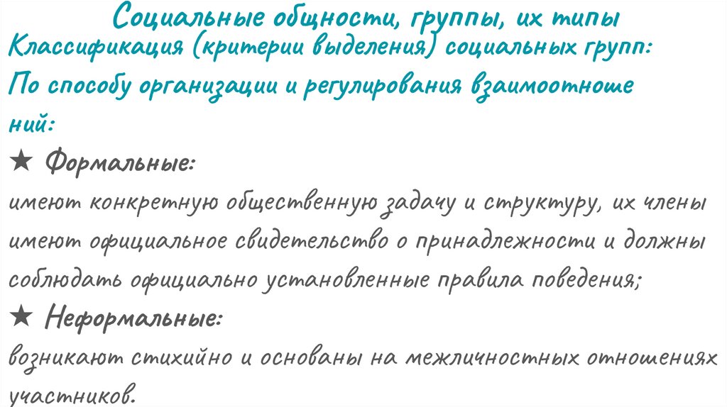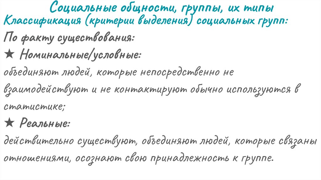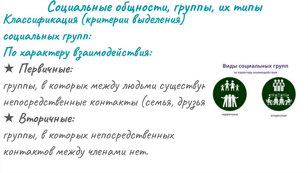 Социальные общности, группы, их типыКлассификация (критерии выделения)