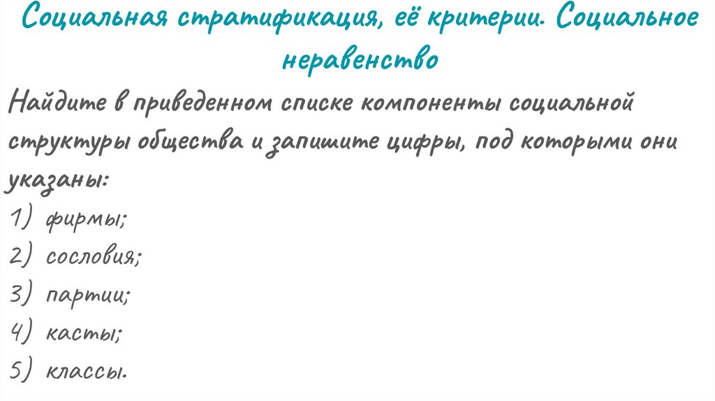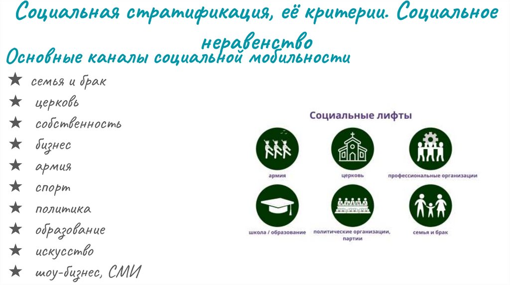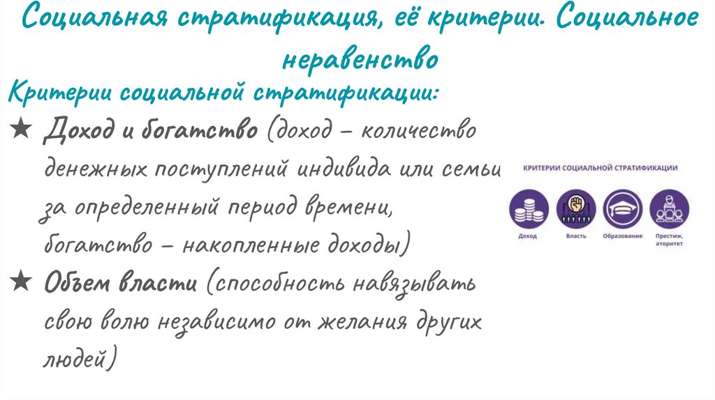 2) Социальная стратификация, её критерии. Социальное