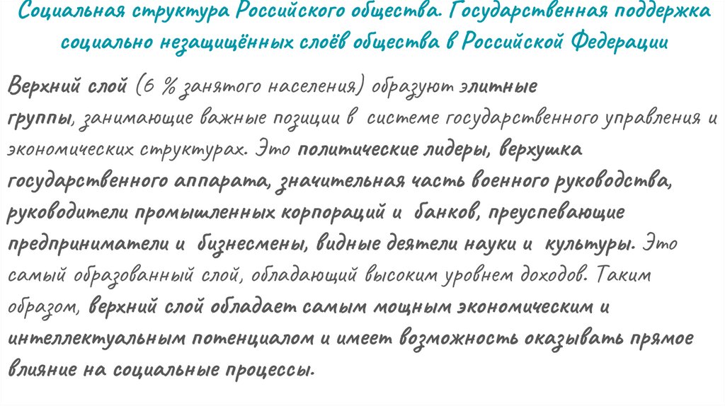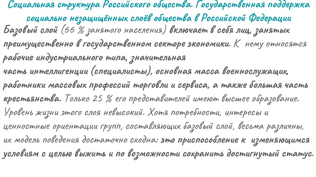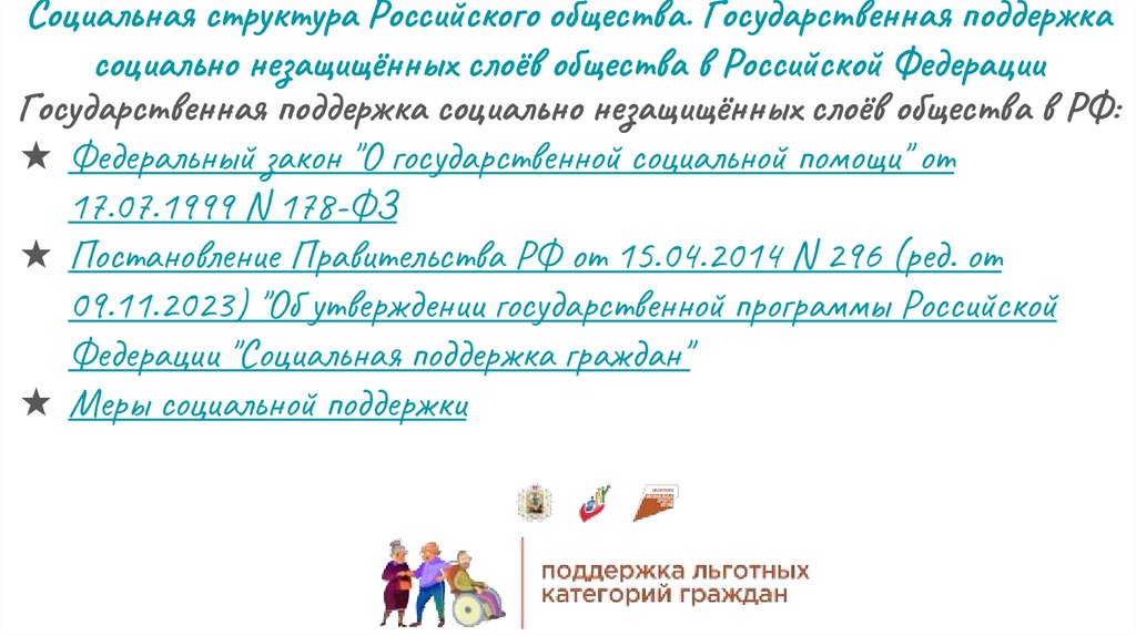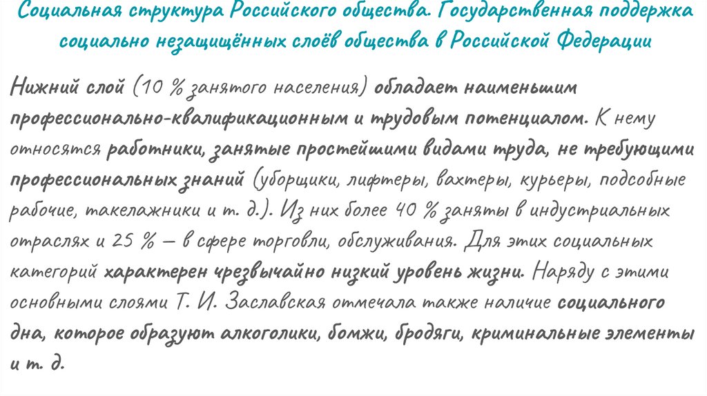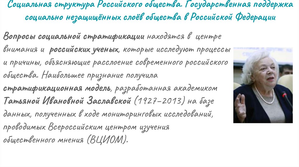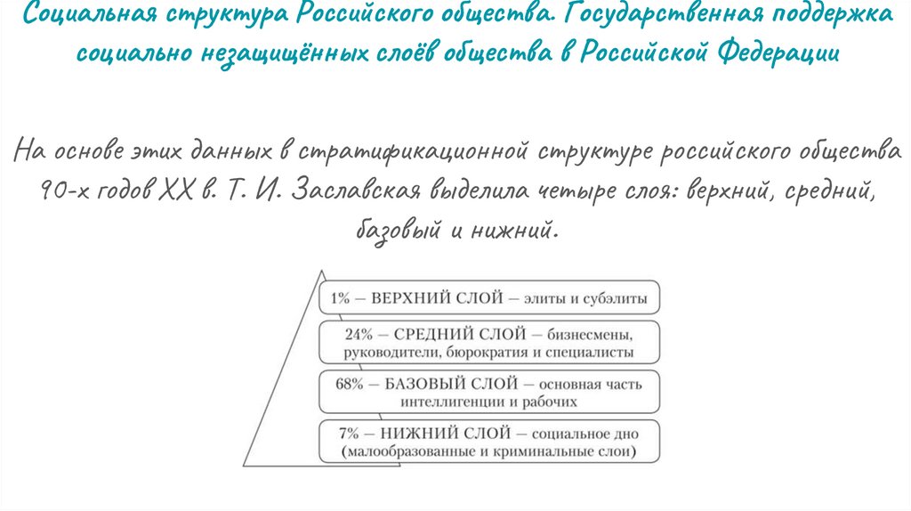 Социальная структура Российского общества. Государственная поддержкасоциально незащищённых слоёв общества в Российской Федерации