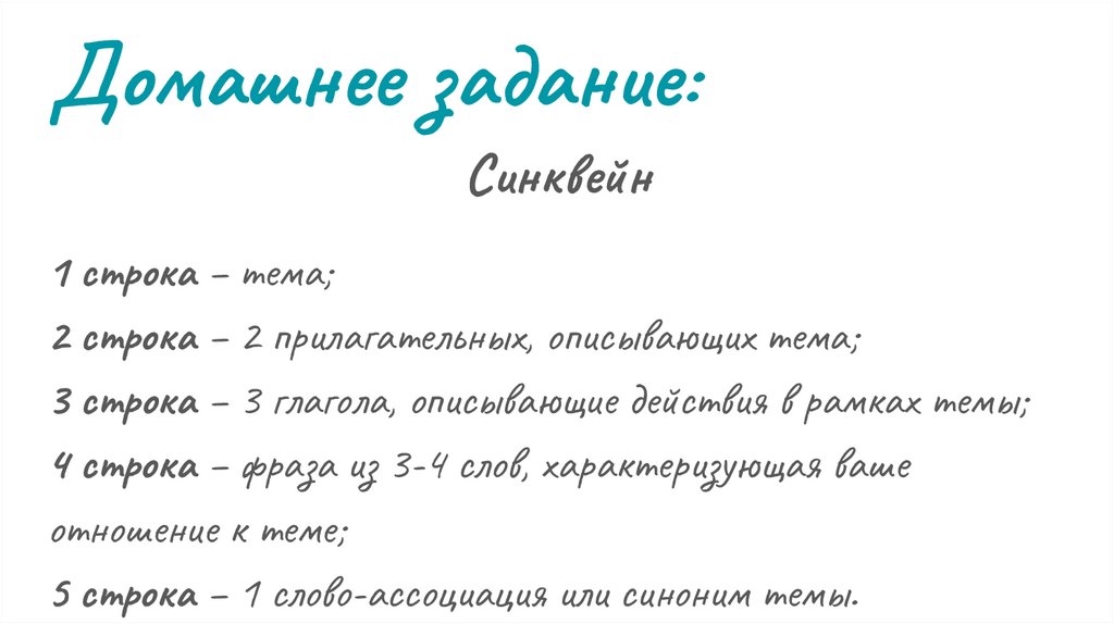 Домашнее задание:Синквейн