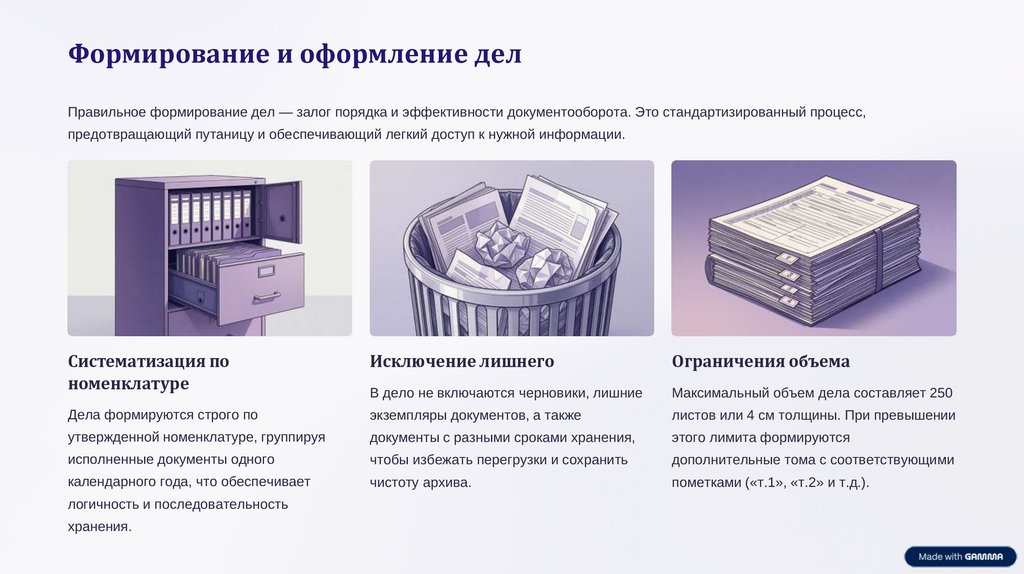 Формирование и оформление делПравильное формирование дел — залог порядка и эффективности документооборота. Это стандартизированный процесс,