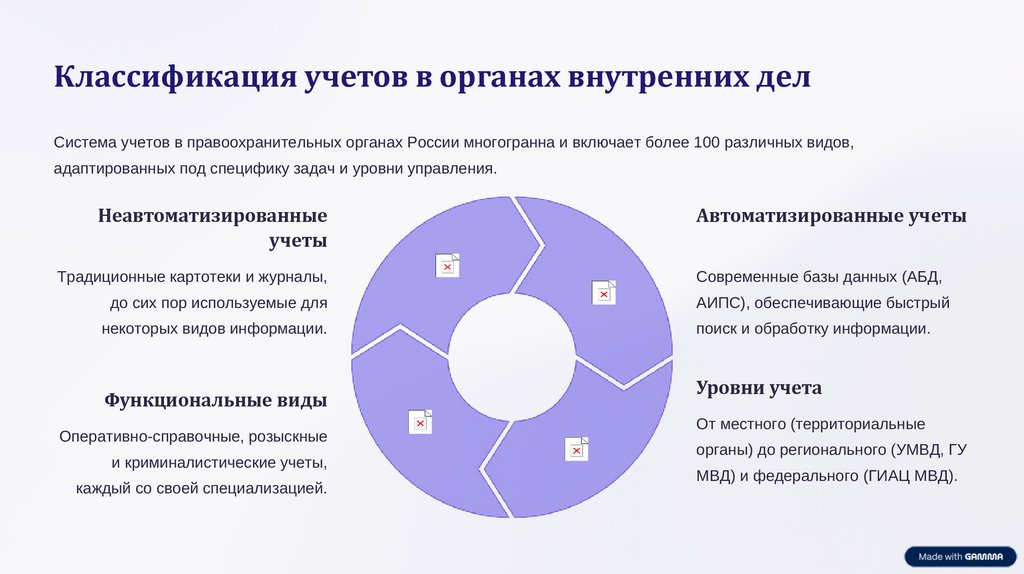 Классификация учетов в органах внутренних делСистема учетов в правоохранительных органах России многогранна и включает более 100 различных видов,