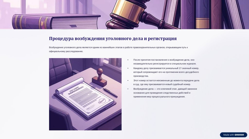 Процедура возбуждения уголовного дела и регистрацияВозбуждение уголовного дела является одним из важнейших этапов в работе правоохранительных органов, открывающим путь к