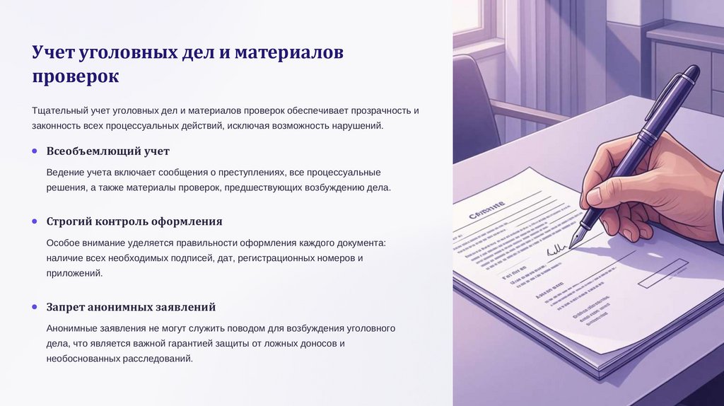 Тщательный учет уголовных дел и материалов проверок обеспечивает прозрачность и