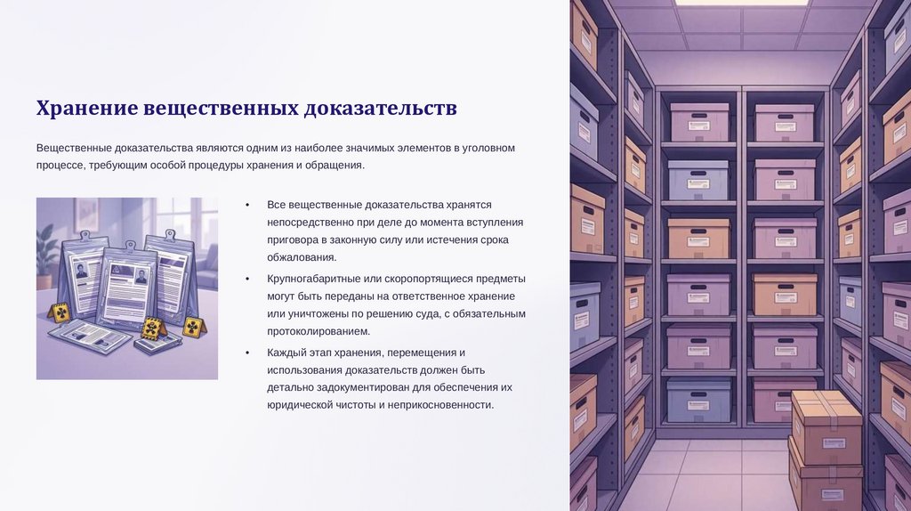 Хранение вещественных доказательствВещественные доказательства являются одним из наиболее значимых элементов в уголовном