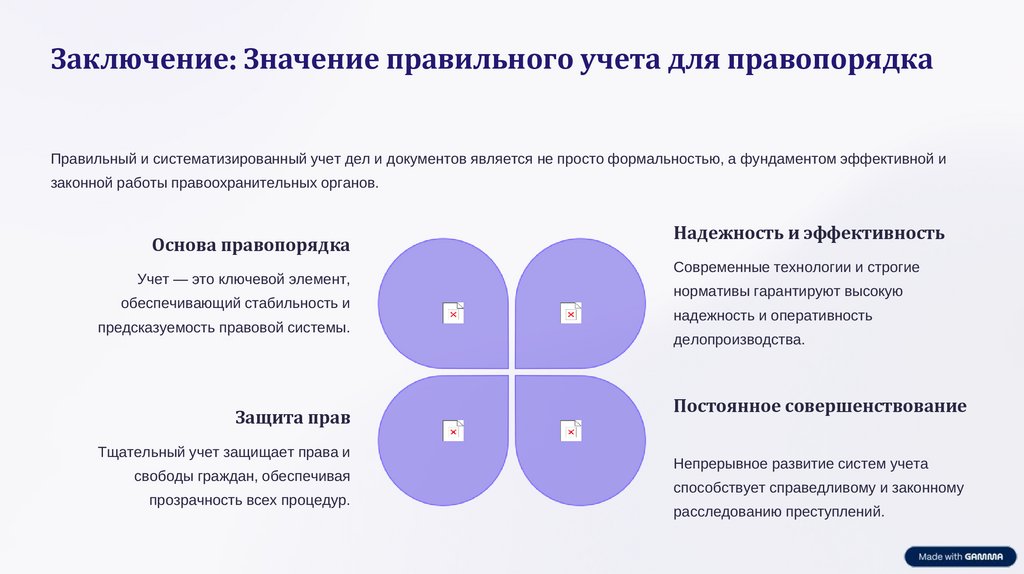 Заключение: Значение правильного учета для правопорядкаПравильный и систематизированный учет дел и документов является не просто формальностью, а фундаментом эффективной и