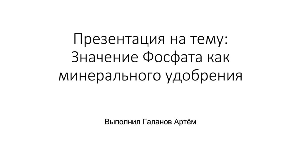 1. Презентация на тему: Значение Фосфата как минерального удобрения