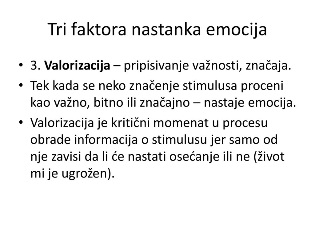 • 6. Tri faktora nastanka emocija