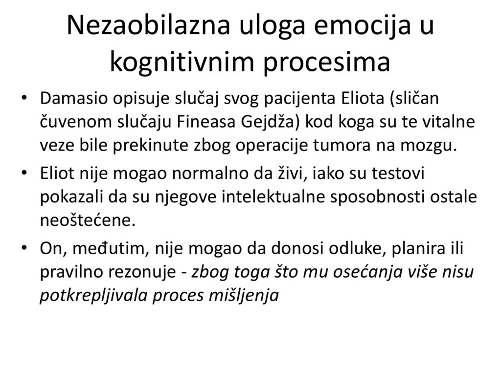 funkcije (emocija i inteligencije) i isključivao je
