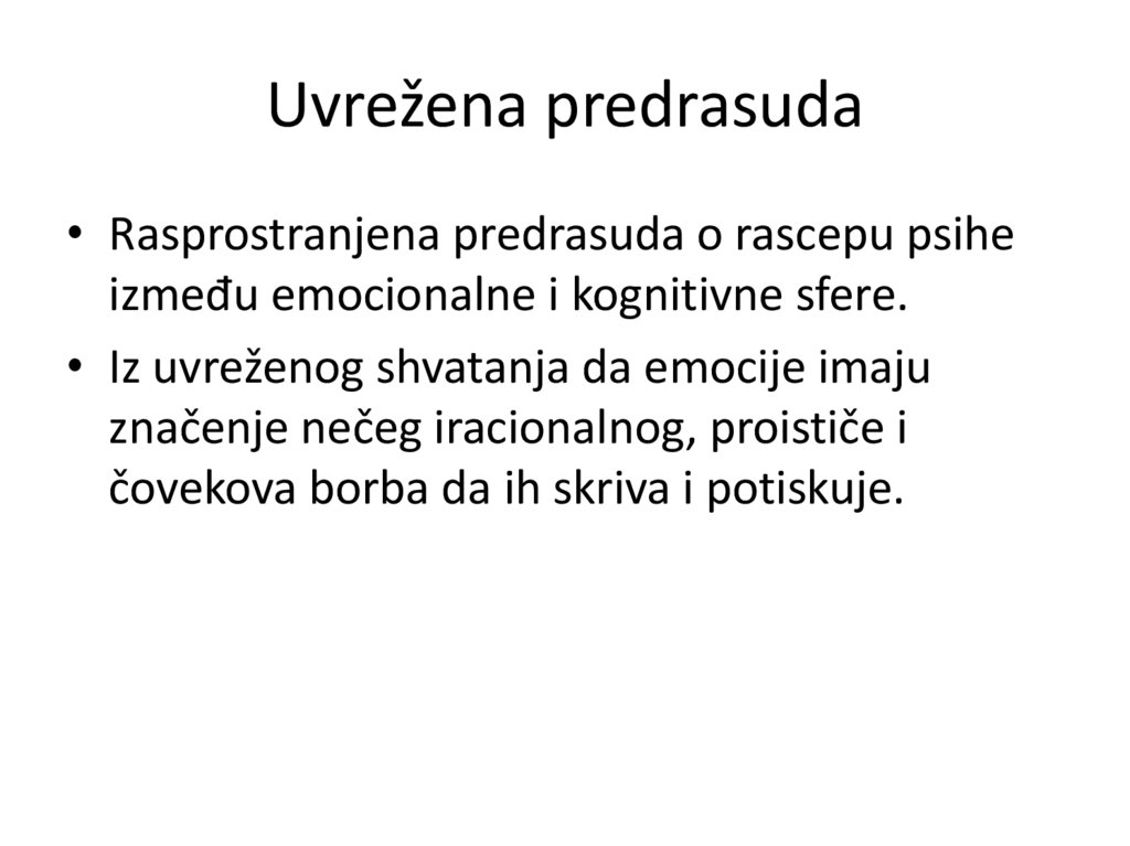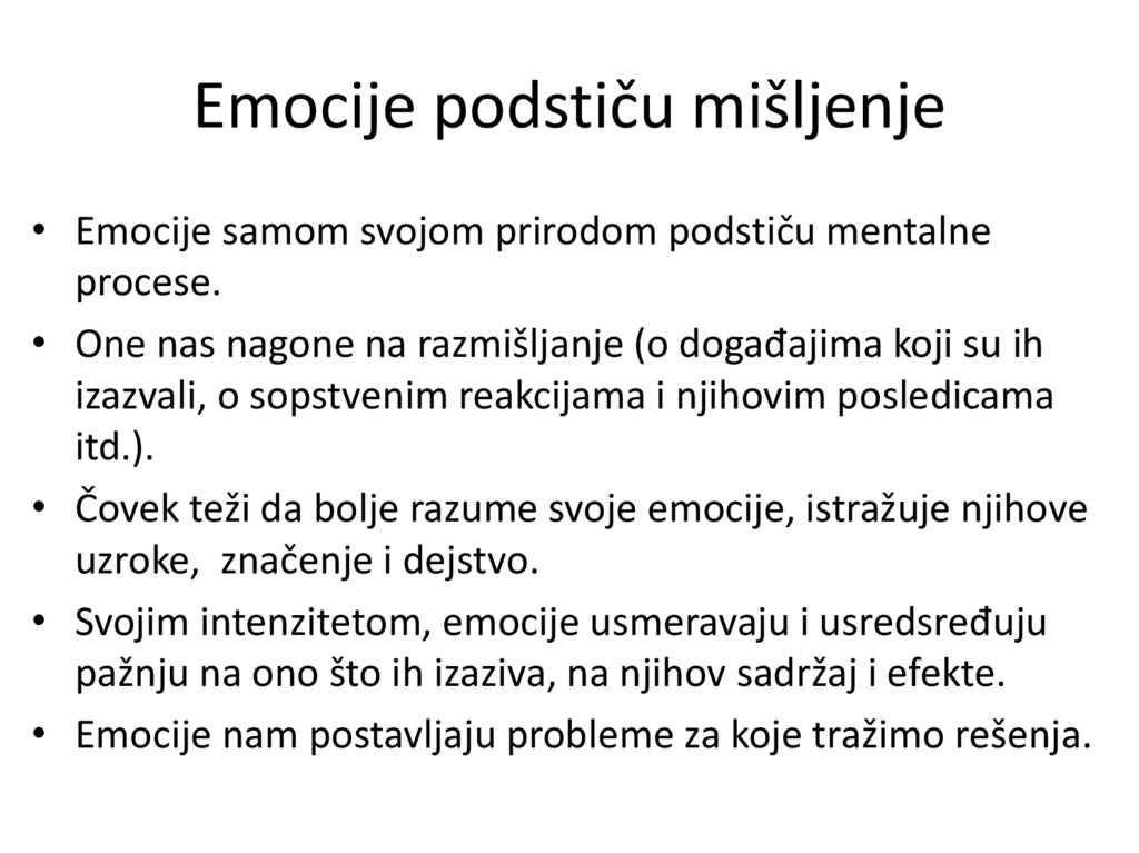 • Iz uvreženog shvatanja da emocije imaju